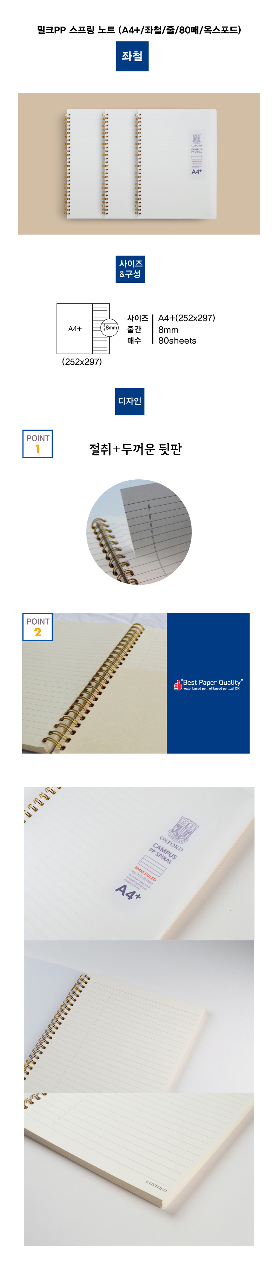 [Oxford] 5000 Milk PP Cover Spiral Notebook A4 Plus | Lined / 80 Sheets | 297*225mm | Left Twin Spiral Bound