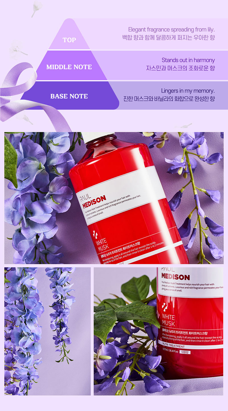 [Paul Medison] Nutri Treatment _ White Musk Scent _ 1077ml/ 36.4Fl.oz, pH Balanced Perfumed Hair Treatment for Damaged Hair_ Made in Korea