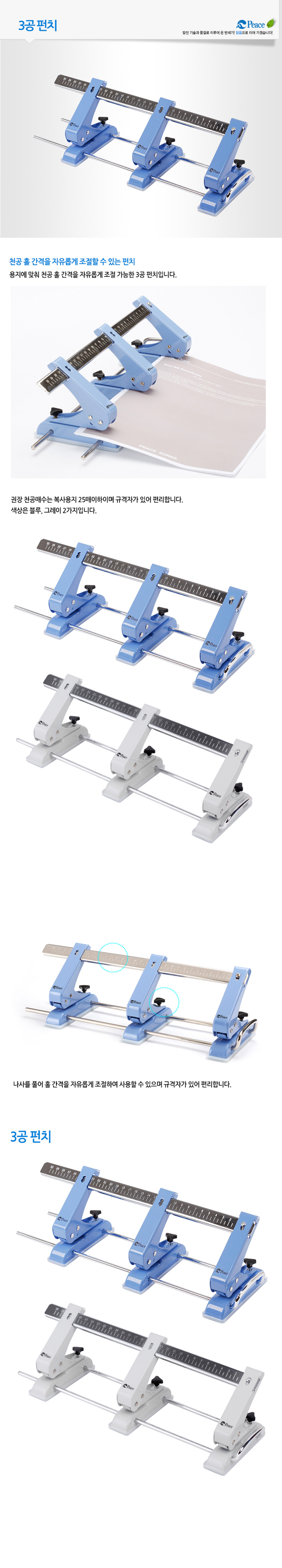 [PEACE] Adjustable 3-Hole Punch | 25-Sheet Capacity | Flexible Hole Distance | Built-in Ruler | Made in Korea