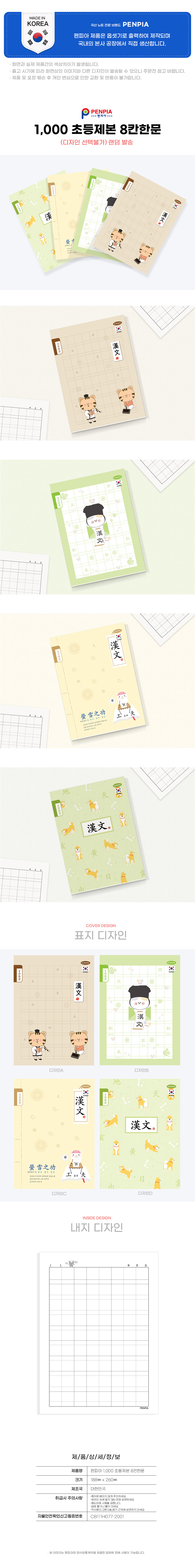 [Penpia] 1000 Elementary 8-Square Chinese Character Practice Notebook | Perfect Bound | Made in Korea