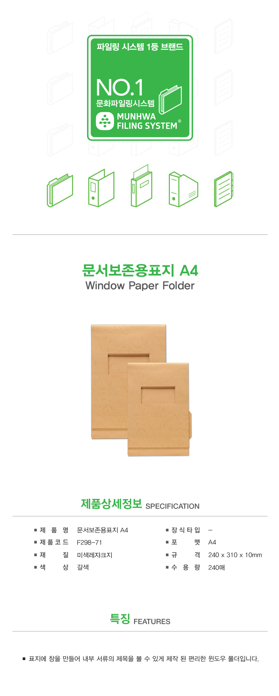 Product Title Munhwa Professional Document Archival Folder F298-7 | Window Folder A4 | Light Brown Lezak Paper | Made in Korea