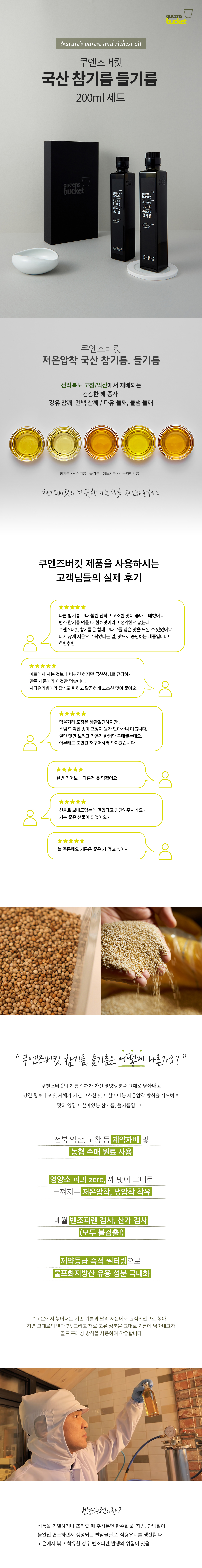QUEENBUCKET Korean Sesame & Perilla Oil Set (200ml + 200ml) _ Cold-Pressed Premium Oils