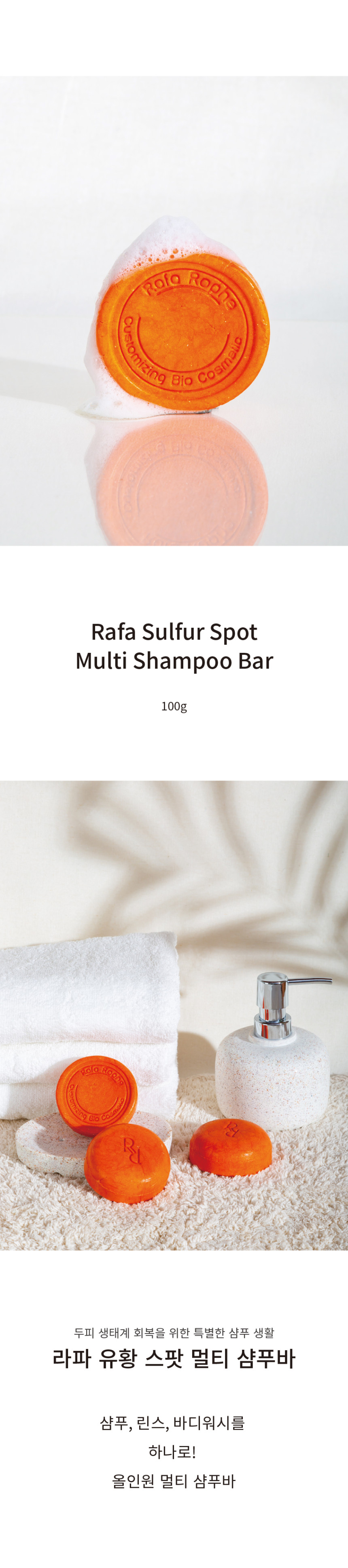 RafaRophe Sulfur Spot Multi Shampoo Bar 100g Eco-Friendly All-in-One Cleanser with Patent Complex Sulfur for Scalp and Body _ Made in KOREA