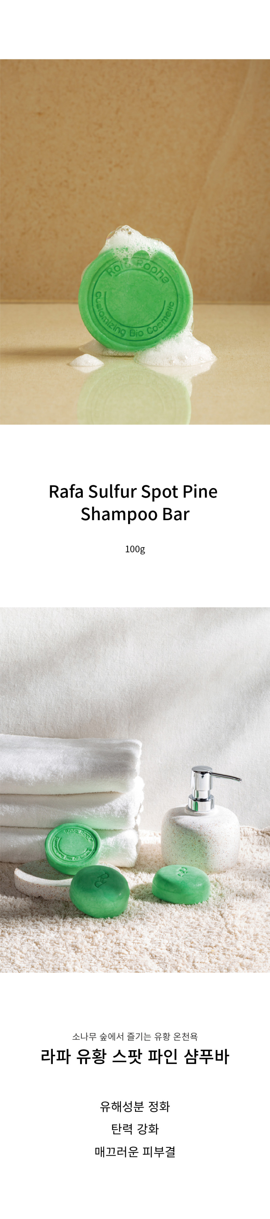 RafaRophe Sulfur Spot Pine Shampoo Bar 100g Phytoncide Forest Therapy All-in-One Cleanser with Patent Complex Sulfur _ Made in KOREA