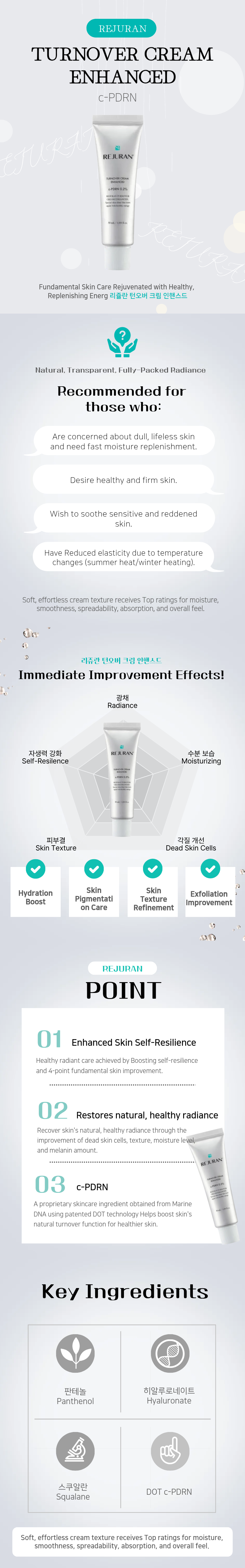 REJURAN Turnover Cream Enhanced 1.69 fl.oz. – DOT™ c-PDRN | Deep Hydration & Brightening Moisturizer | Skin Texture & Glow Renewal Cream _ Made in KOREA