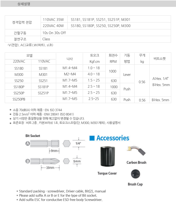SAEHAN AC Direct-connected Electric Screwdriver SS250P-B, Push type, 5mm Bit, 220V, Rotation direction and Torque nut adjustable electric screwdriver