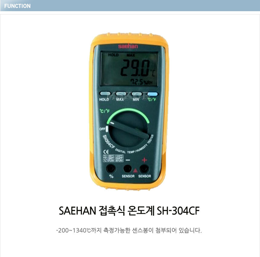 SAEHAN Contact Digital Temperature / Humidity Meter SH-304CF, Range -200~13400℃ (-328~2444°F)