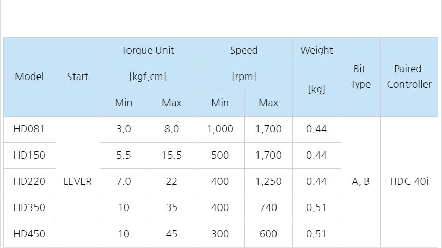 SAEHAN Hybrid Electric Screwdriver HD-SERIES, HD081, HD150, HD220, HD350, HD450, Lever type, Electric Driver capable of Remote Control and Fastening Data Output