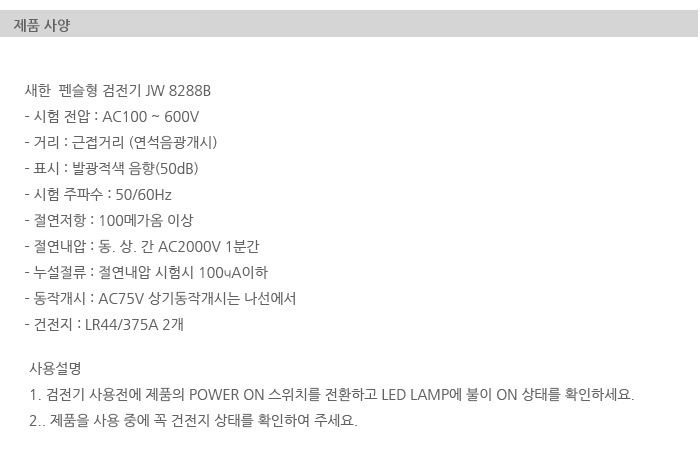 SAEHAN Pencil-Type Low-Voltage Detector JW8288B, For Close Range Use, Luminous Red Light (Acoustic 50dB)