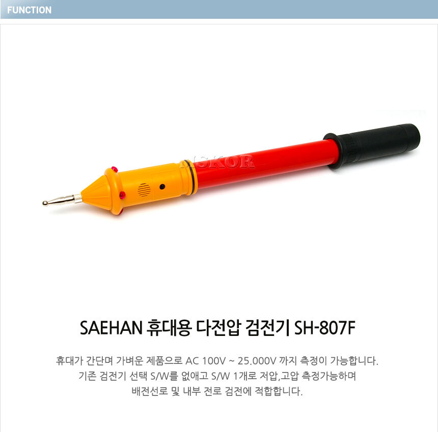 SAEHAN Portable Multi-voltage Tester SH-807F, 1M, Measures AC 100V ~ 25.000V, Detects Electricity in Distribution Lines and Internal Circuits