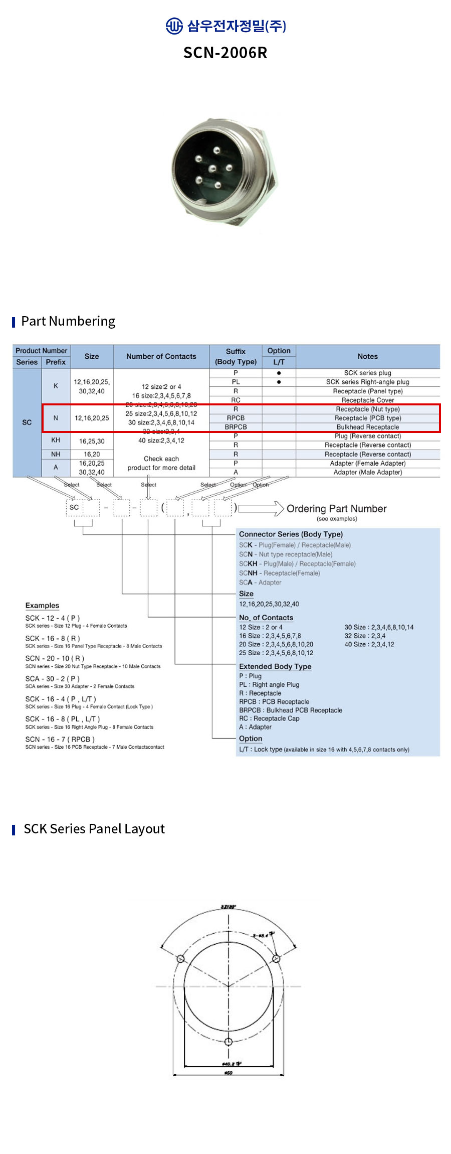 SAMWOO ELECTRONICS SCN-2006R Circular Connector Receptacle Type 6 Pin Industrial Panel Mount Socket Made in Korea Genuine High-Precision