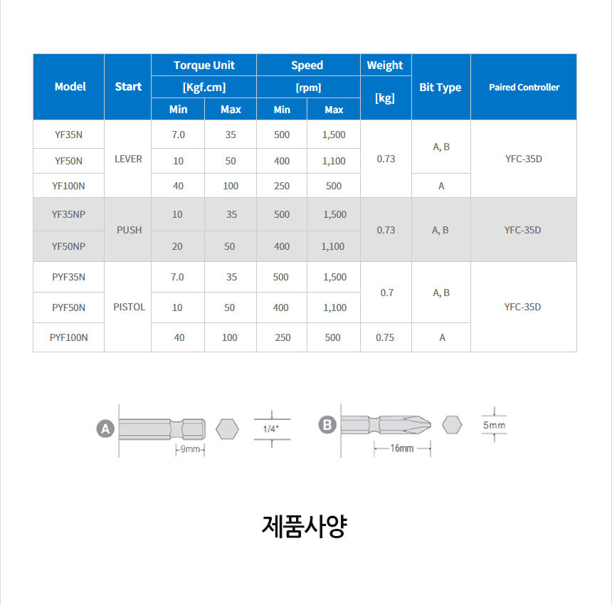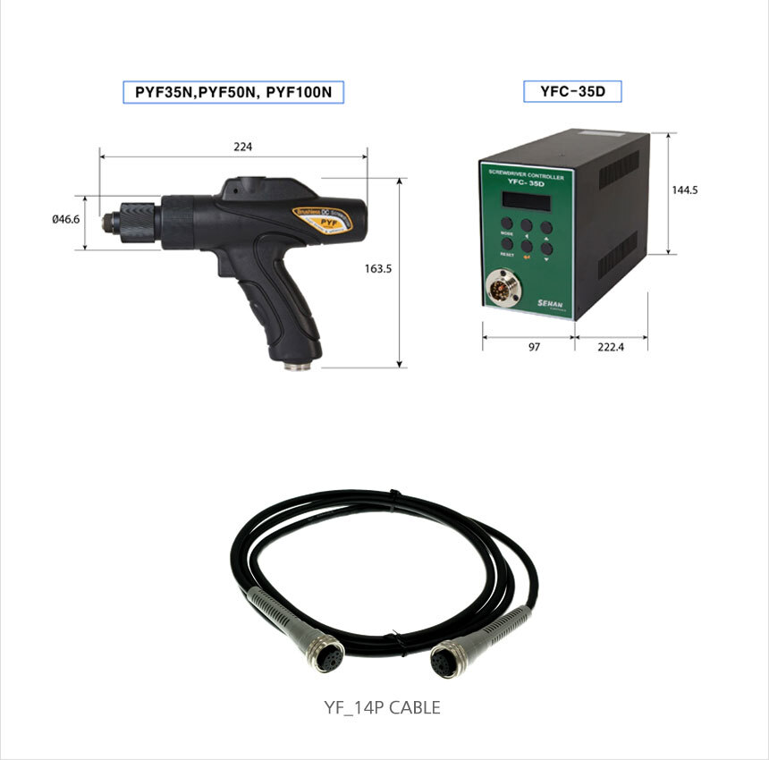 SEHAN BLCD Clutch Control Electric Driver YF-SERIES, YF35NP, YF50NP Bit A/B, Push Type Screwdriver, 300~1700RPM, ESD