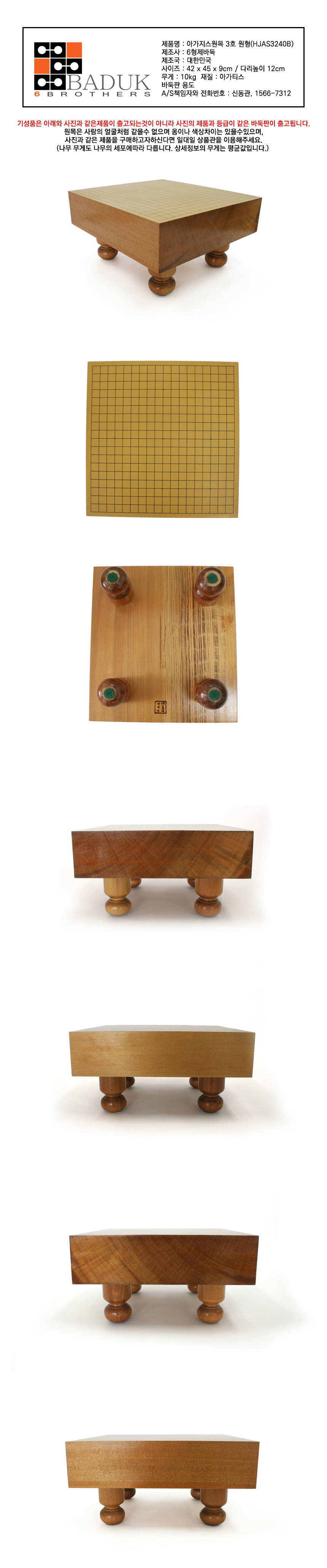 Six Brothers Authentic Agathis Wood Go Board No. 3 with Traditional Round Legs 420x450x90mm Made in Korea