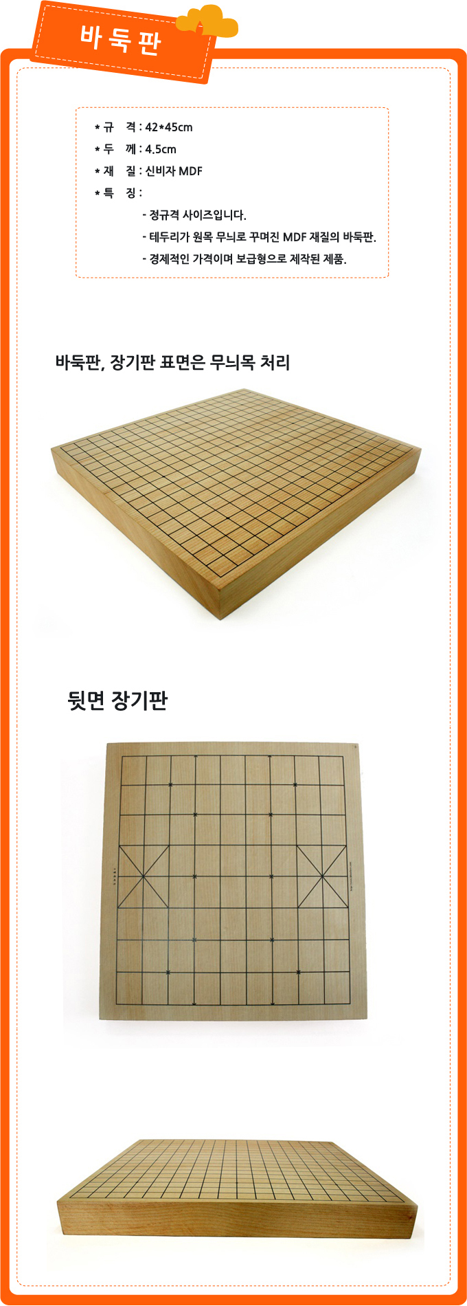 Six Brothers Sinbija Patent No. 1.5 Double-Sided Go & Janggi Board 42x45x4.5cm MDF Flat Board Made in Korea