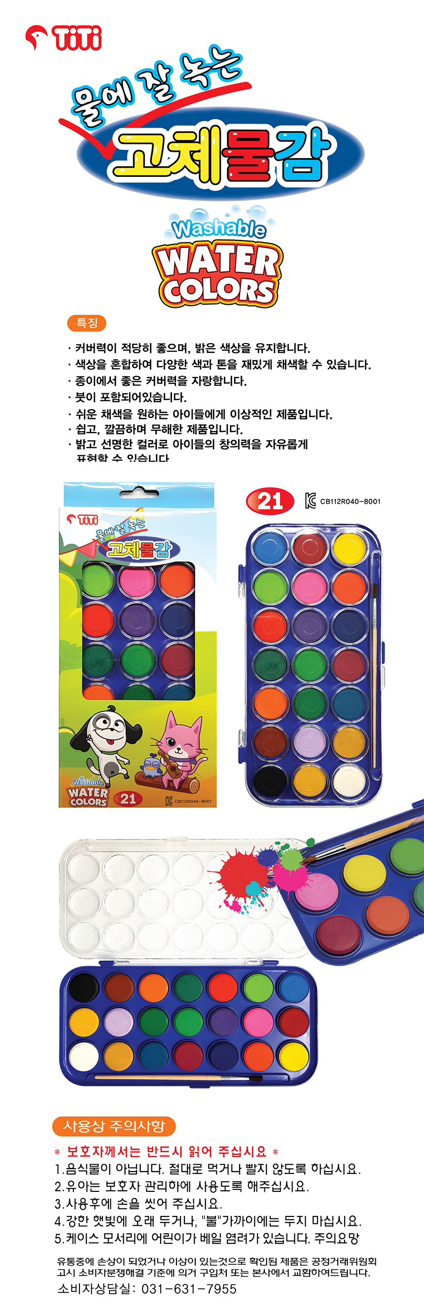 TiTi Water-Soluble 21-Color Solid Watercolor Paint Set with Palette Lid and Premium Brush Included