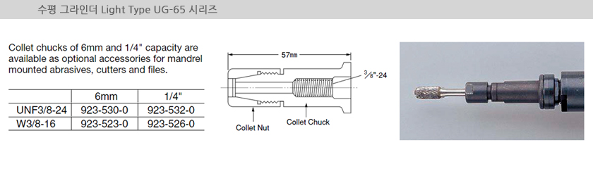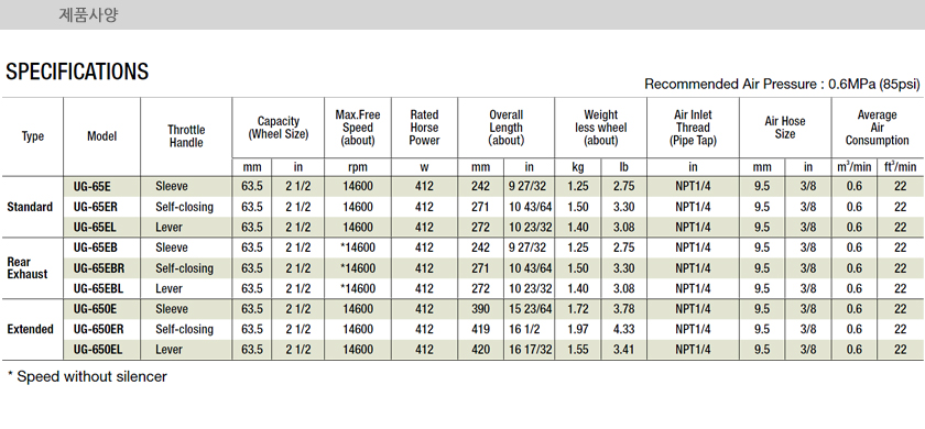 URYU AIR HORIZONTAL GRINDER UG-65E, WHEEL Size 63.5mm, 14600 rpm, 412w, Air Hose 9.5mm