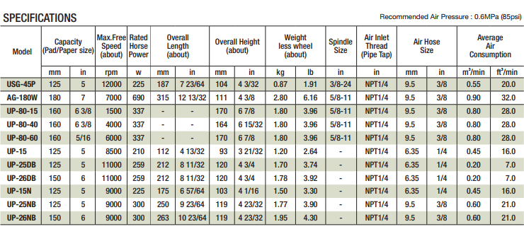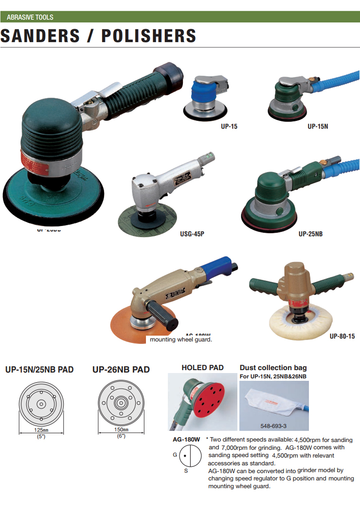 URYU AIR SANDER / POLISHER UP-80-15, Pad Size 180mm, 1500 rpm, 337w, Air Hose 9.5mm