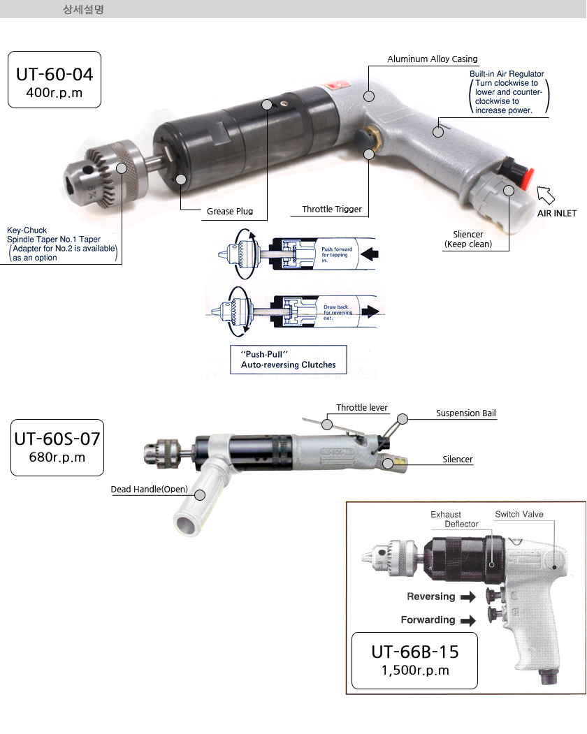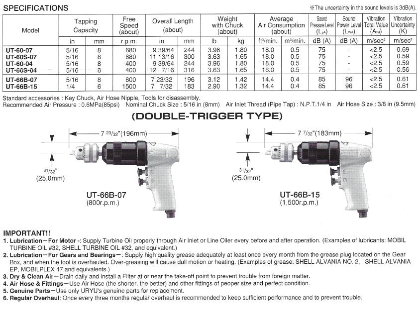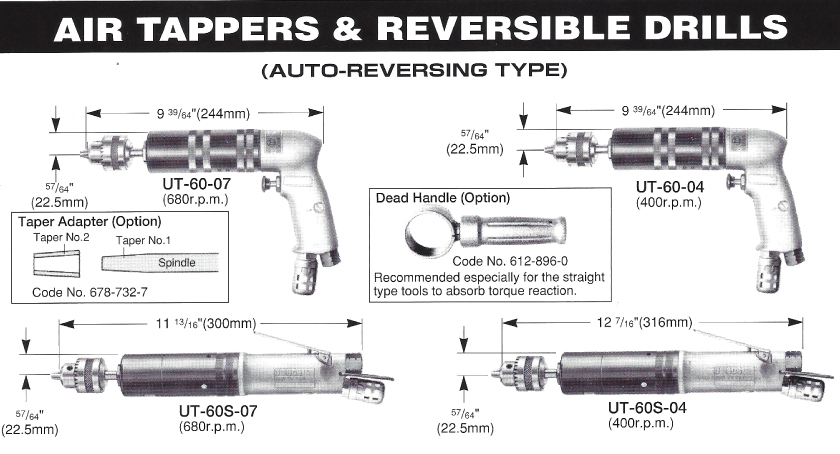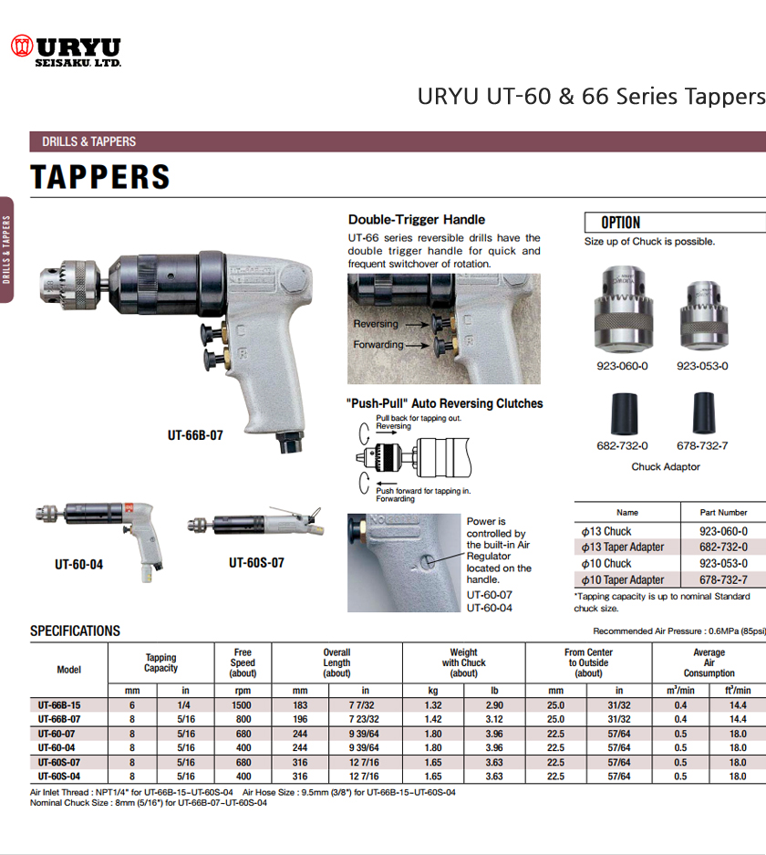 URYU AIR TAPPER (PISTOL-TYPE) UT-60-04, Drilling Size 22.0mm, 600 RPM, Air Hose 12.7mm