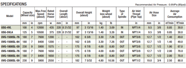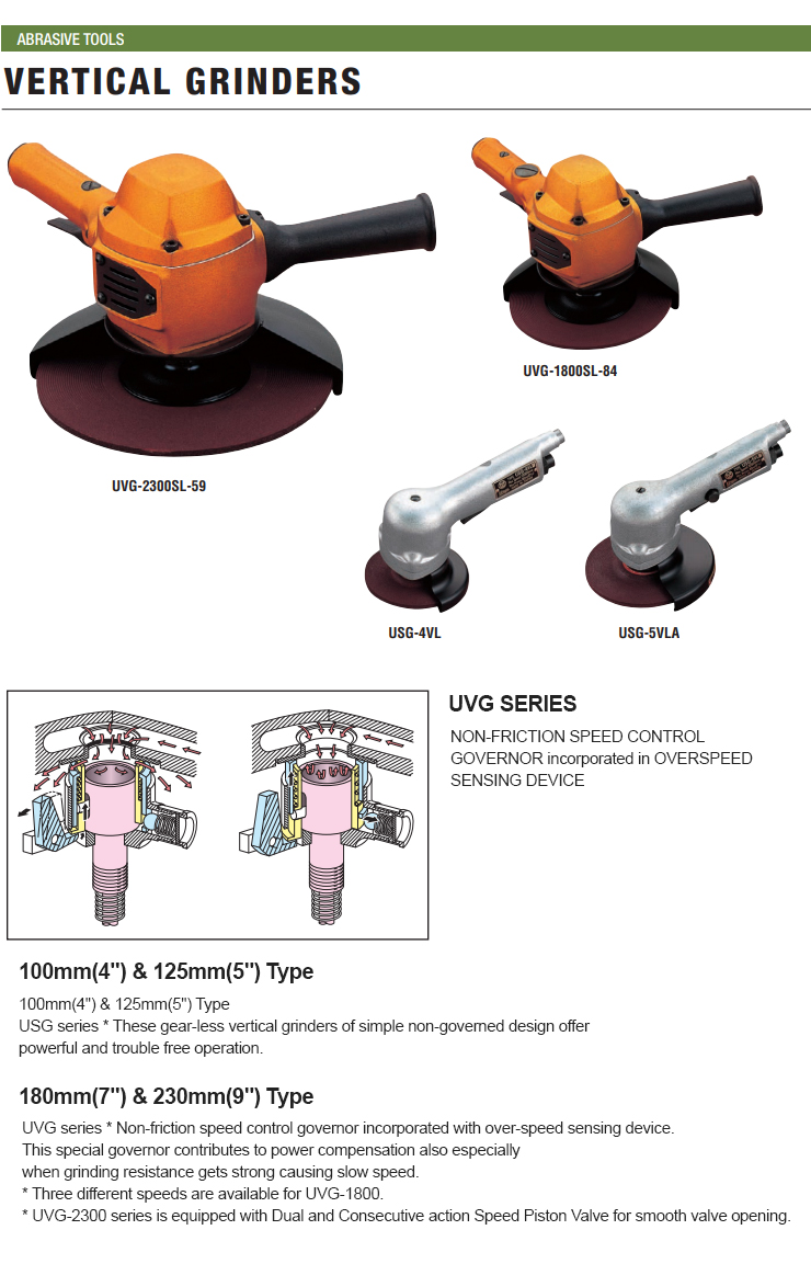 URYU AIR VERTICAL GRINDER UVG-2300SL-59, Wheel Size 230mm, 5900 rpm, 2550w, Air Hose 19mm