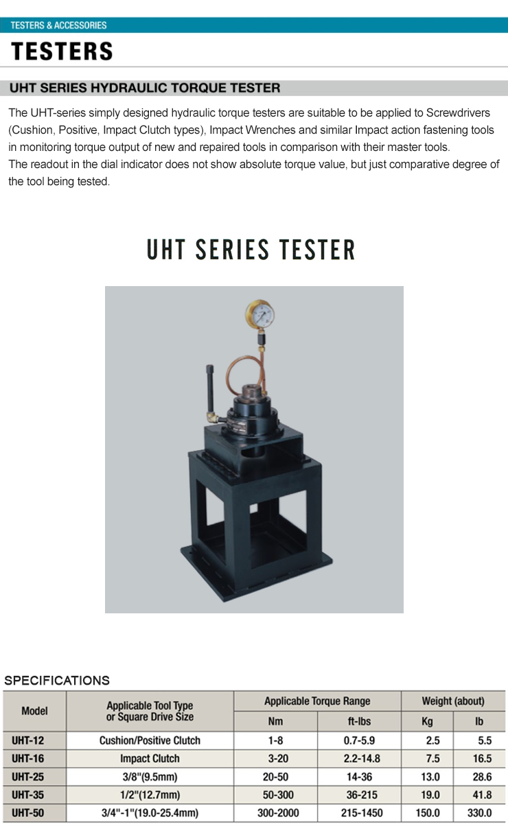 URYU HYDRAULIC TORQUE TESTER UHT-50, Square Drive Size 19.0-25.4mm, Torque Range 300-2000Nm