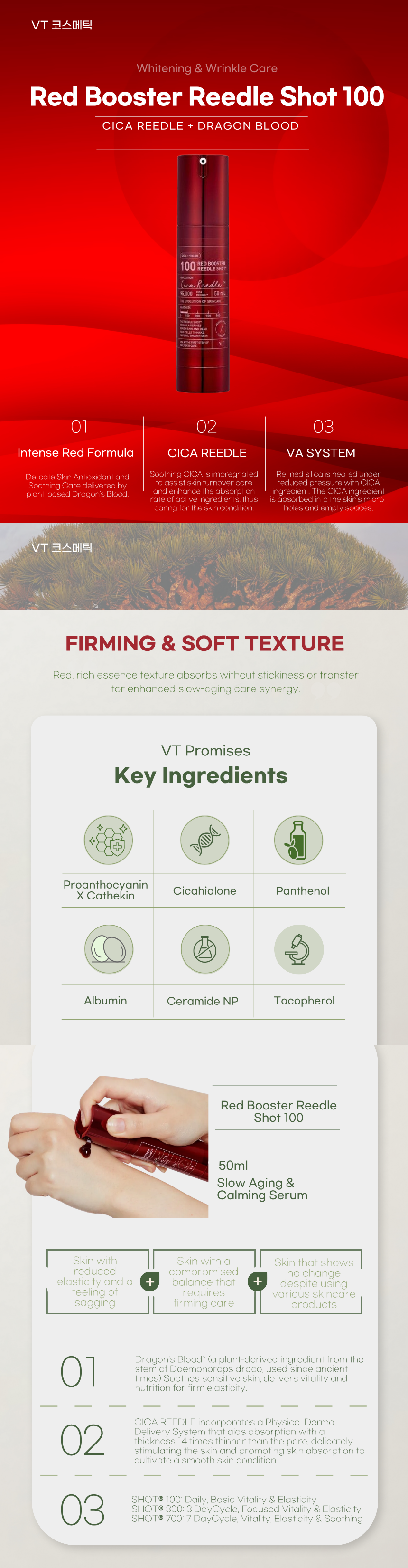 [VT Cosmetics] Red Booster Reedle Shot 100 50ml | Whitening & Wrinkle Care | Cica Reedle Absorption Booster | Slow Aging & Calming Serum _ Made in Korea
