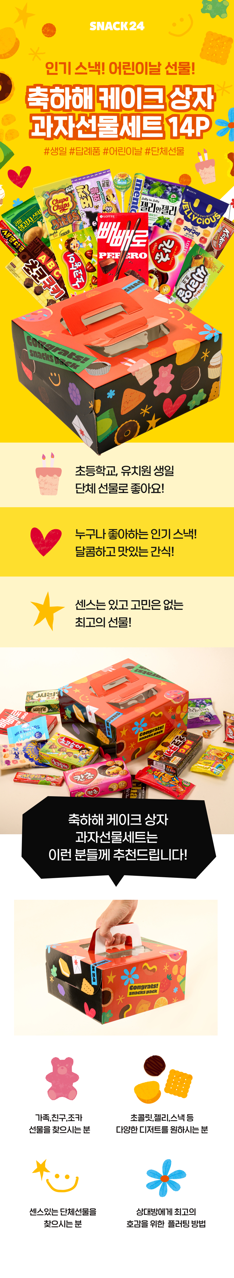 WeFun Snack24 Celebration Cake Box – Korean Snack Gift Set 14P for Birthday Parties & Kids