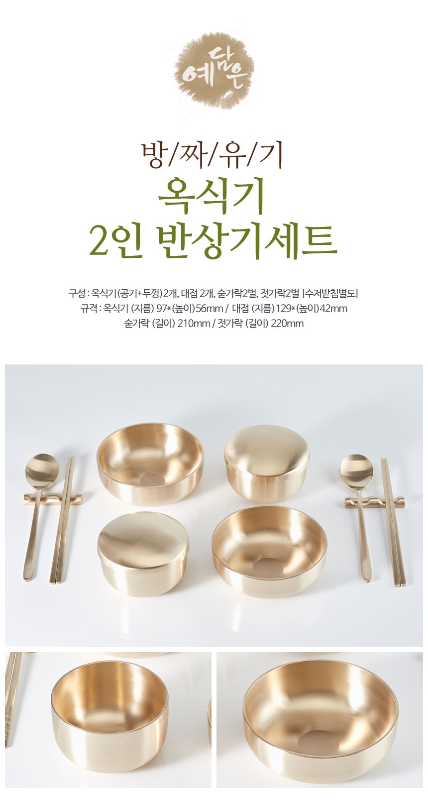 YEDAMUN Premium Bangjja Bronze Korean Tableware Set for Two – Handmade Traditional Yugi Brass Rice Bowl Soup Bowl Spoon Chopsticks | Korean Traditional Golden Cutlery Dinnerware _ Made in KOREA