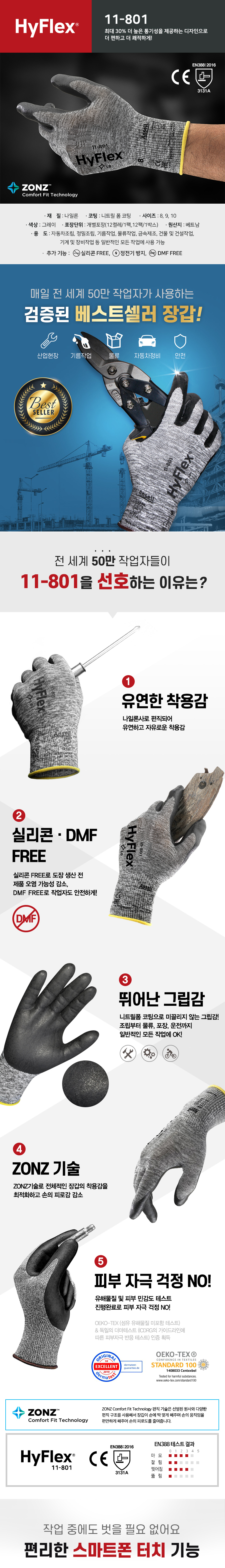 ANSEL HyFlex Work Gloves 11-801, Nitrile Foam Coating, Anti-Static, Silicone DMF Free, Smart Touch
