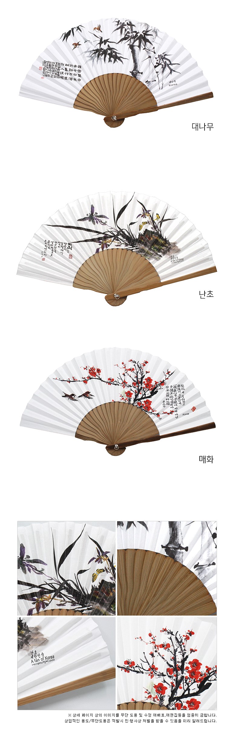 [ATTY FACTORY] Korean Traditional Folding Fan – Plum Blossom of Four Gracious Plants (Plum, Orchid, Bamboo, Chrysanthemum) _ Hanji & Bamboo Material _ Korean Knot & Gift Box Included _ Made in Korea
