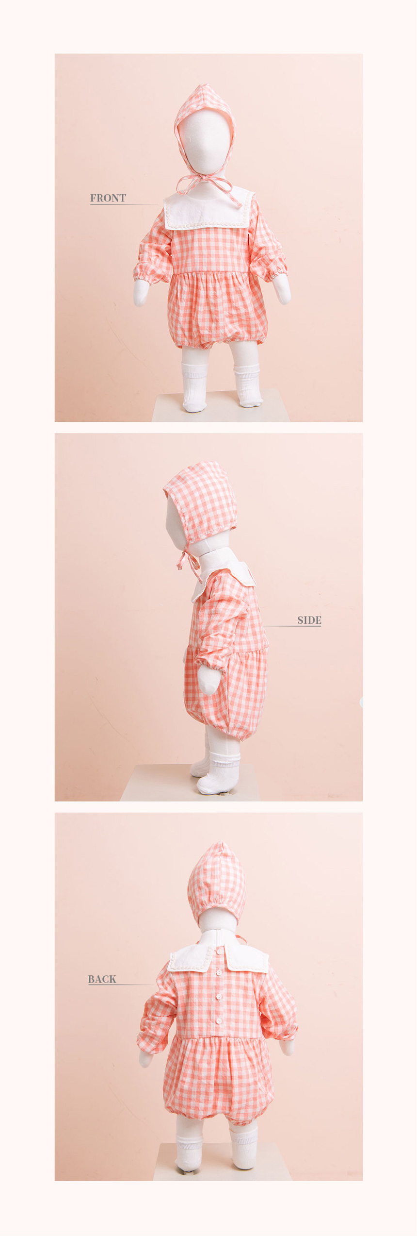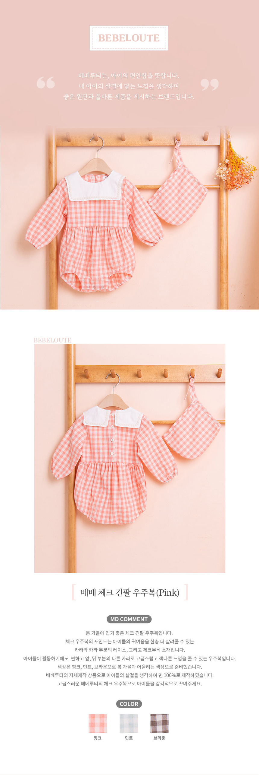 [BEBELOUTE] Bebe Check Long Sleeve Bodysuit (Pink), Baby All-in-One, Infant Bodysuit, Cotton 100% _ Made in KOREA