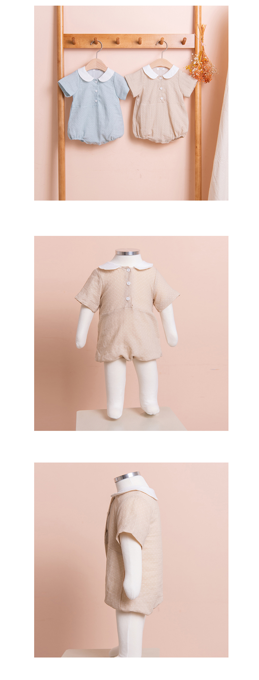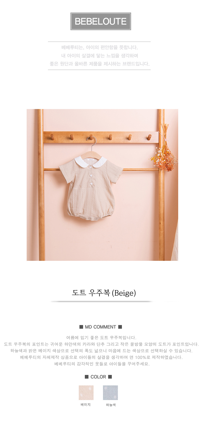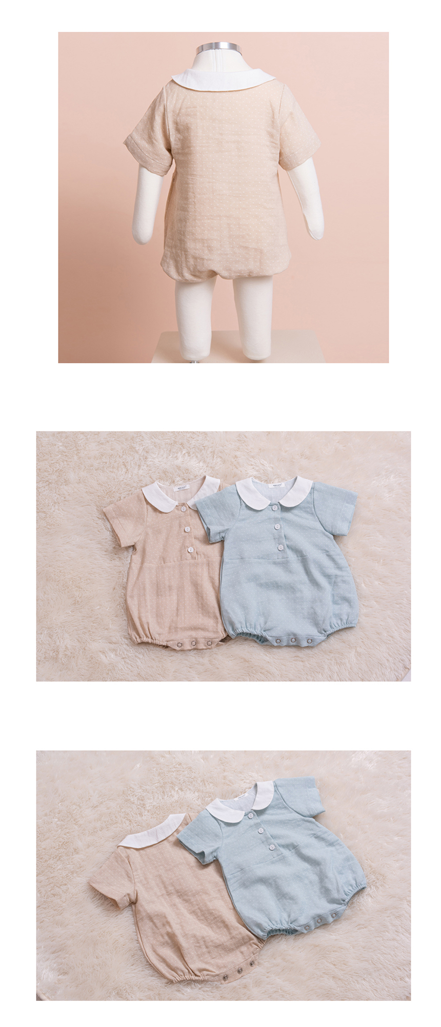 [BEBELOUTE] Bebe Dot Body Suit (Beige), Summer All-in-One for Infant and Babyr, Cotton 100% _ Made in KOREA