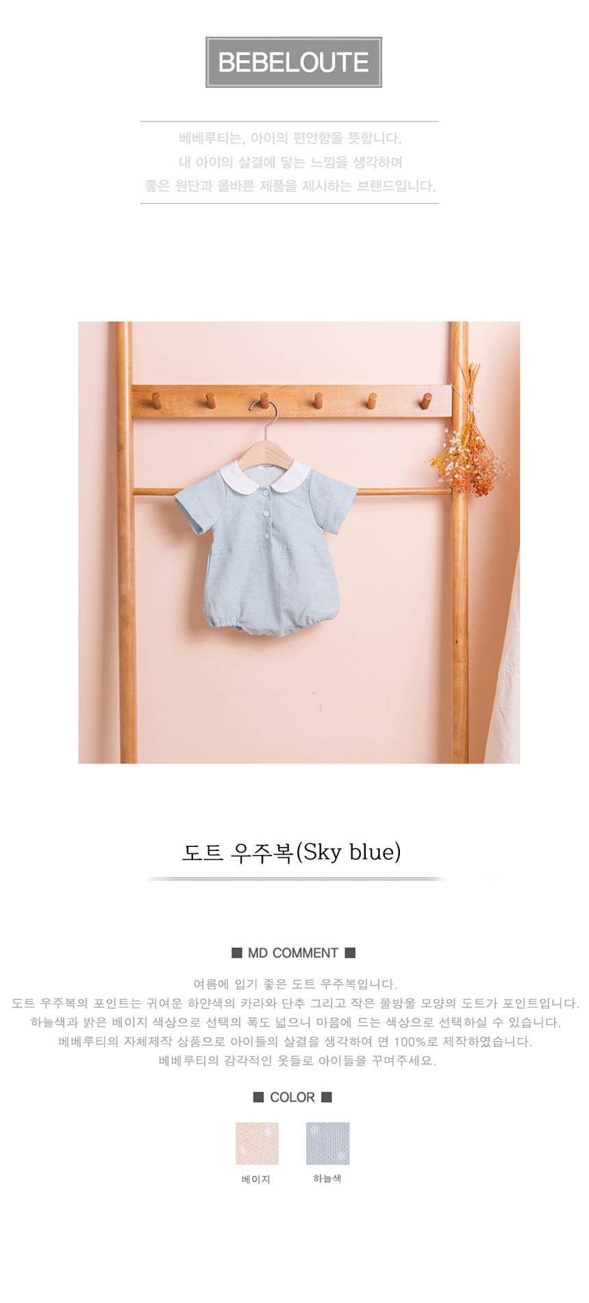 [BEBELOUTE] Bebe Dot Bodysuit (Sky Blue), Summer All-in-One for Infant and Babyr, Cotton 100% _ Made in KOREA