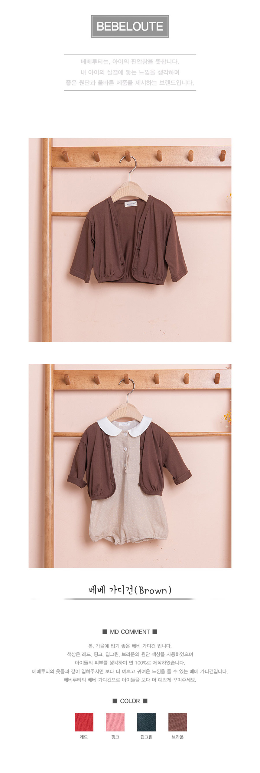 [BEBELOUTE] Bebe Cardigan (Brown), Daily Look, Spring, Fall Fashion for Infant and Toddler, Cotton 100% _ Made in KOREA