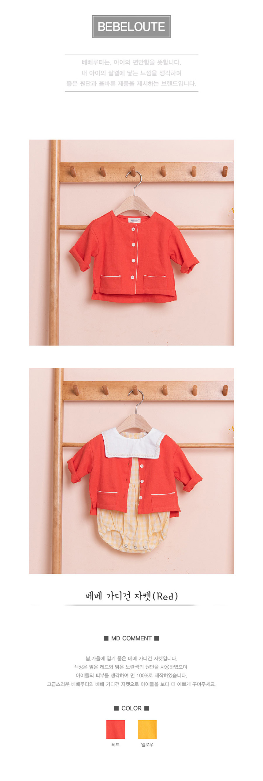 [BEBELOUTE] Bebe Cardigan Jacket (Red), Daily Look, Spring, Fall Fashion for Infant, Cotton 100% _ Made in KOREA