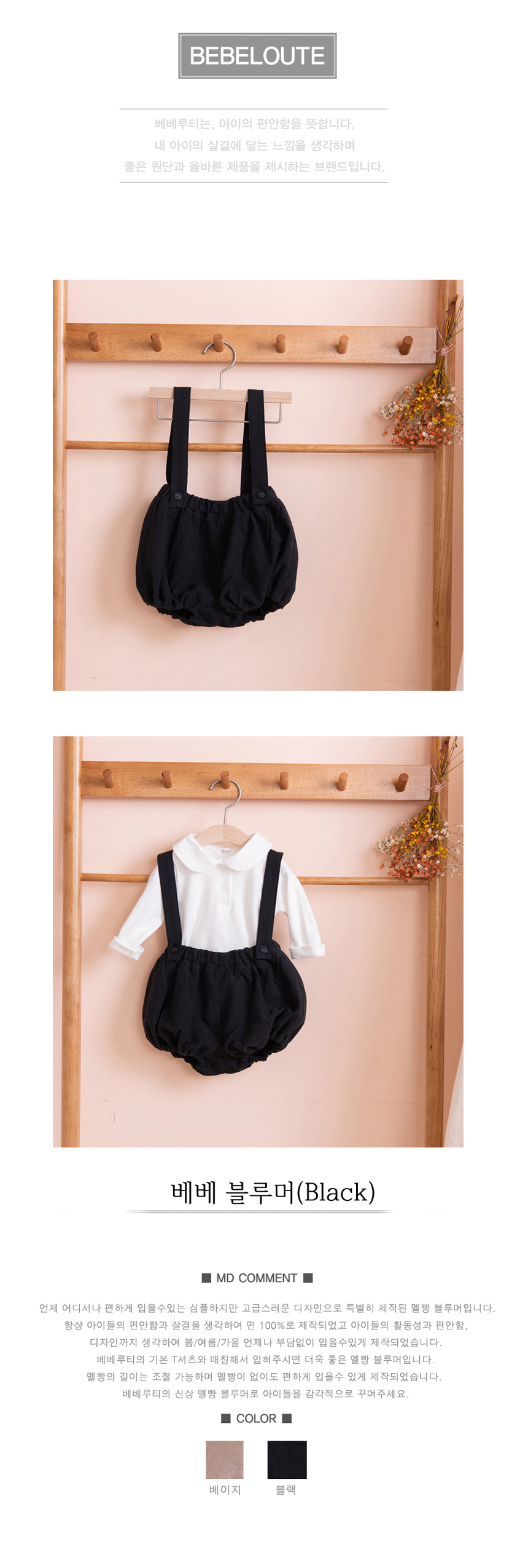 [BEBELOUTE] Bebe Bloomers(Black) Overalls, Short Dungarees for Infant and Baby, Cotton 100% _ Made in KOREA