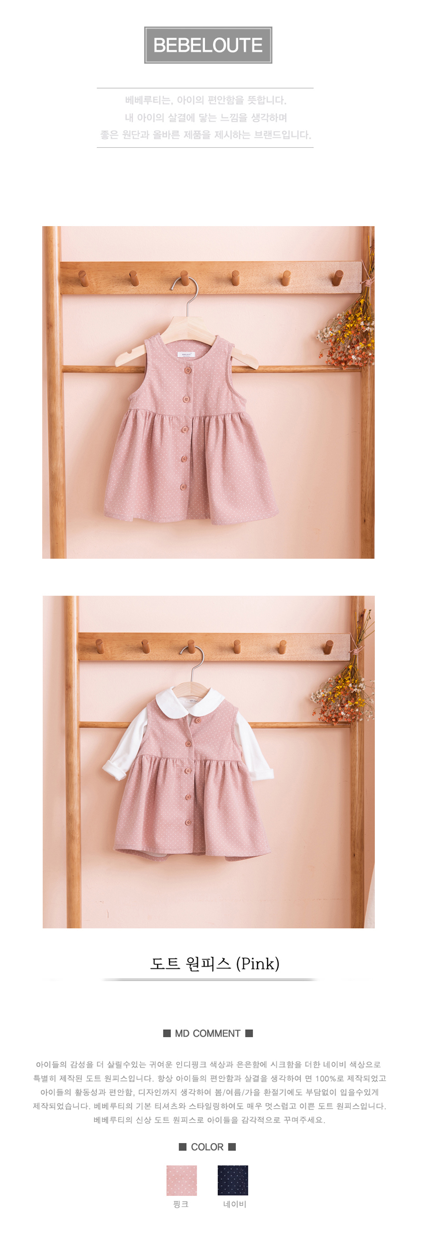 [BEBELOUTE] Bebe Dot Sleeveless Infant Dress(Pink), All-in-One for Infant and Babyr, Cotton 100% _ Made in KOREA