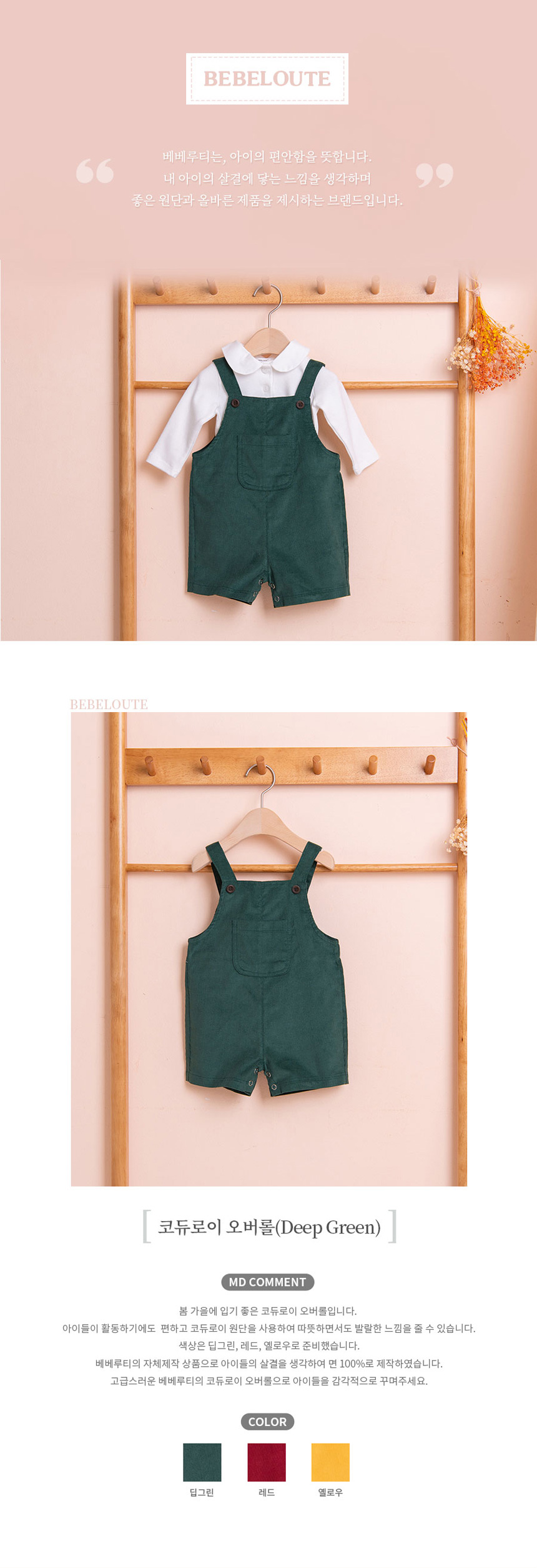 [BEBELOUTE] Corduroy Overall (Deep Green), All-in-One, Short Dungarees for Infant and Toddler, Cotton 100% _ Made in KOREA