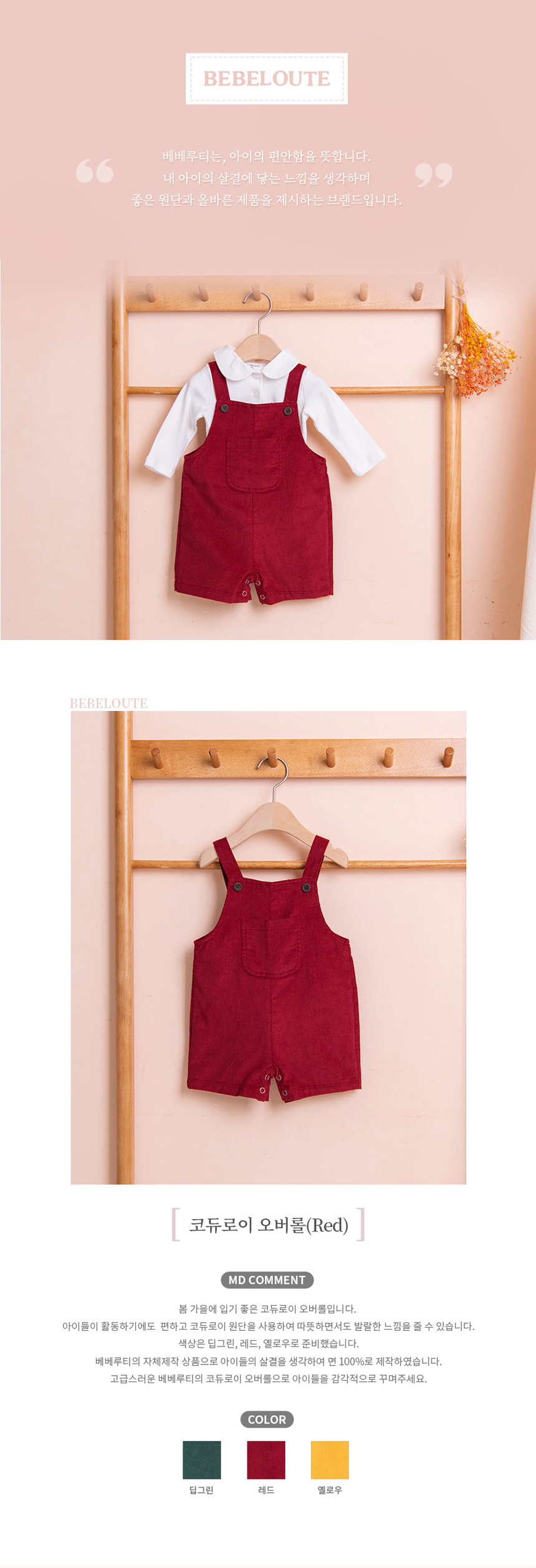 [BEBELOUTE] Corduroy Overall (Red), All-in-One, Short Dungarees for Infant and Toddler, Cotton 100% _ Made in KOREA