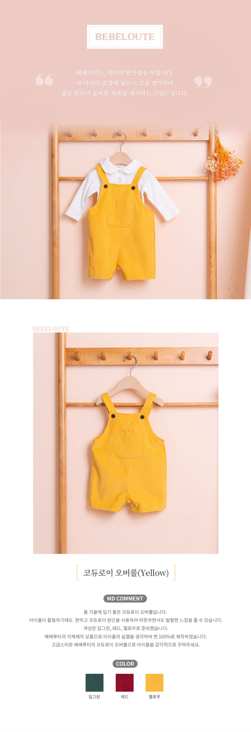 [BEBELOUTE] Corduroy Overall (Yellow), All-in-One, Short Dungarees for Infant and Toddler, Cotton 100% _ Made in KOREA