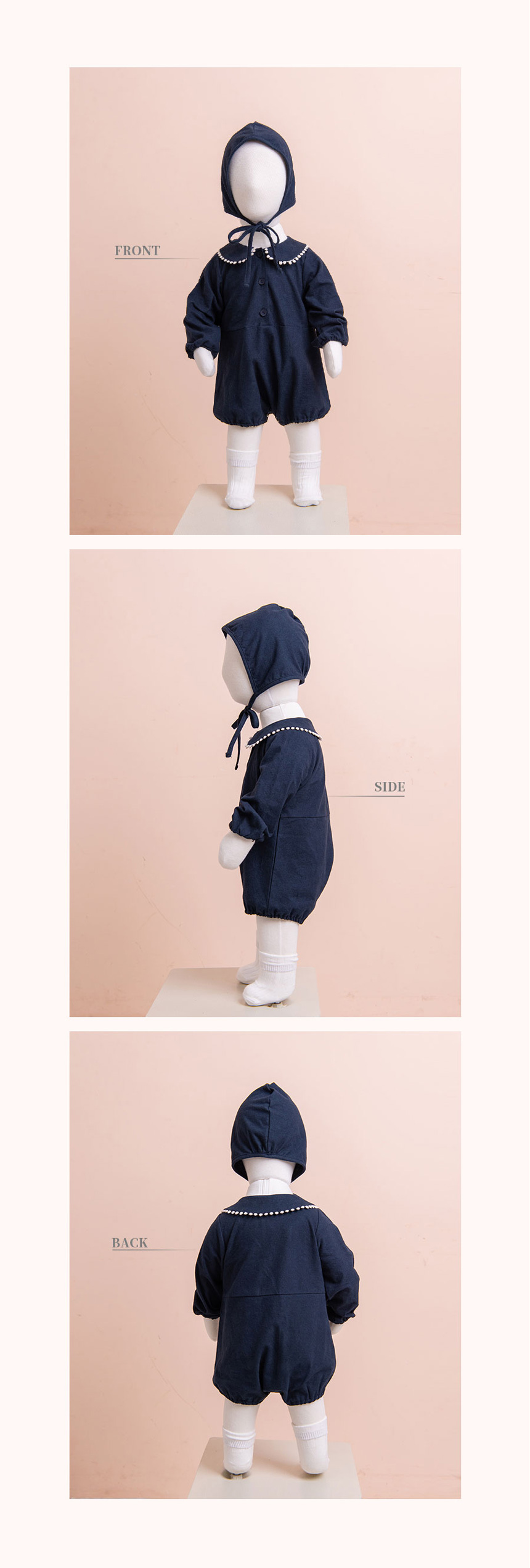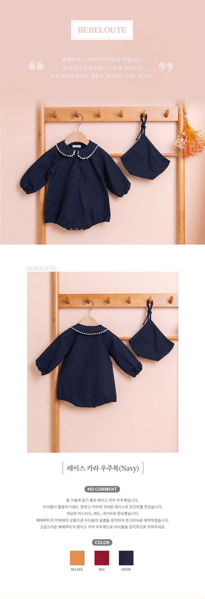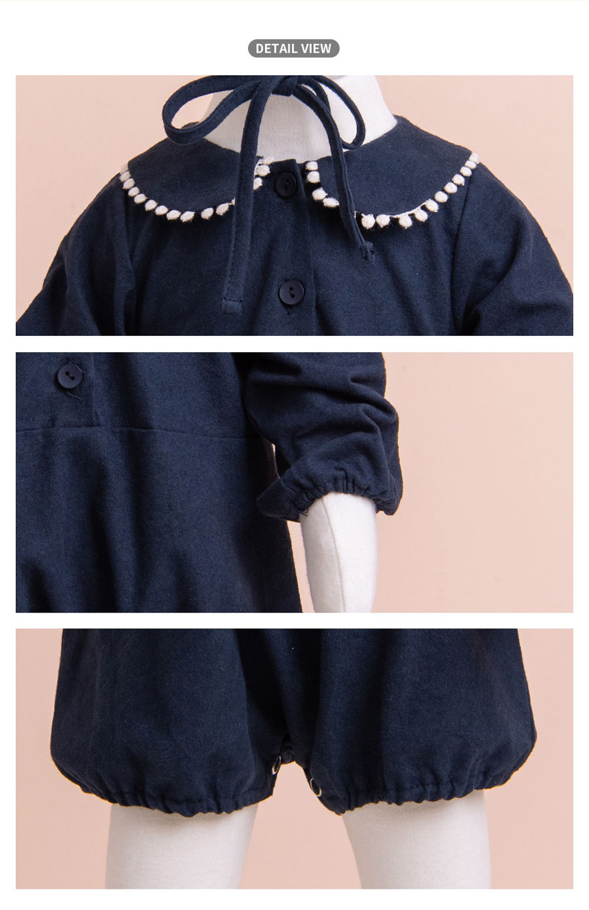 [BEBELOUTE] Lace Collar Bodysuit (Navy), Baby All-in-One Dress, Infant Girls Dress, 100% Cotton_ Made in KOREA