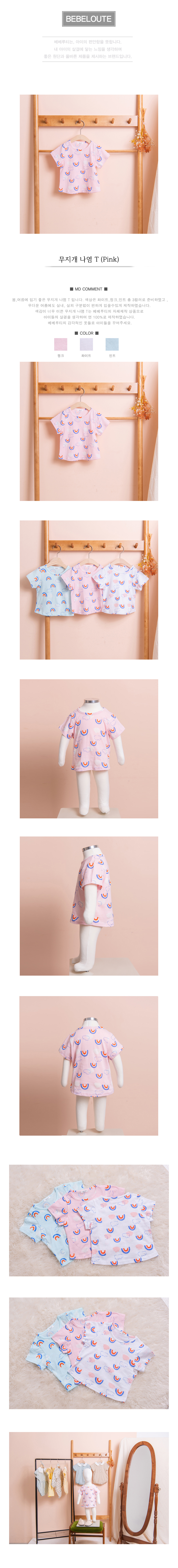 [BEBELOUTE] Rainbow Print T-Shirt (Pink), Baby, Infant T-Shirts, Cotton 100% _ Made in KOREA