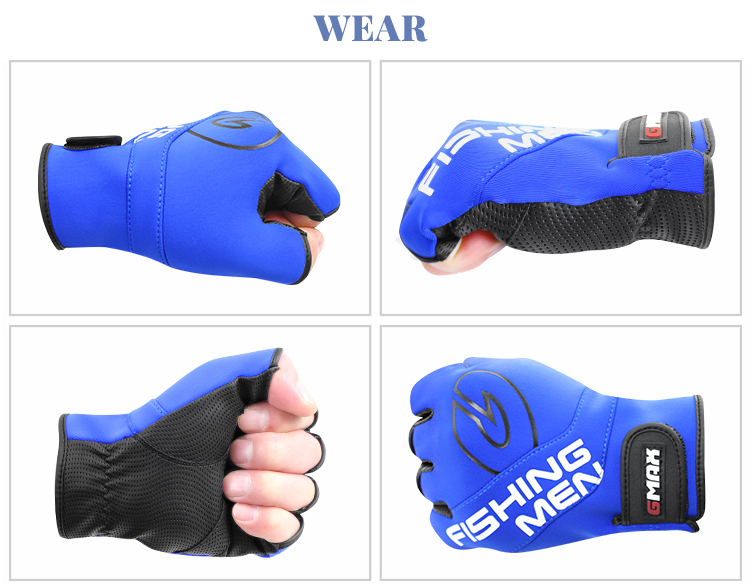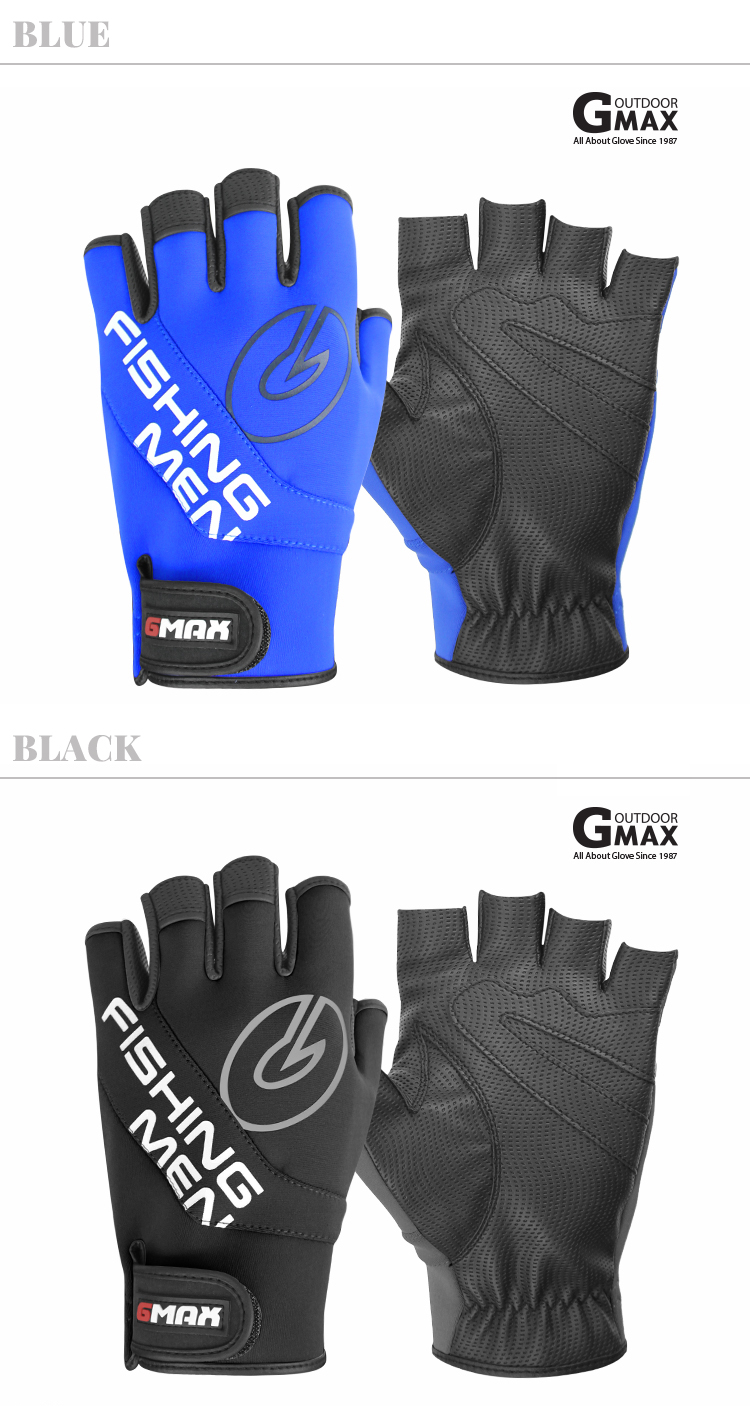 [BY_Glove] GMS10078 G-Max Neo Fishing 5CUT (all cuts) half gloves, Functional Genuine Reinforced Lycra Fabric, High-Quality Synthetic Leather, All-cut Fishing Gloves, angling_Blue