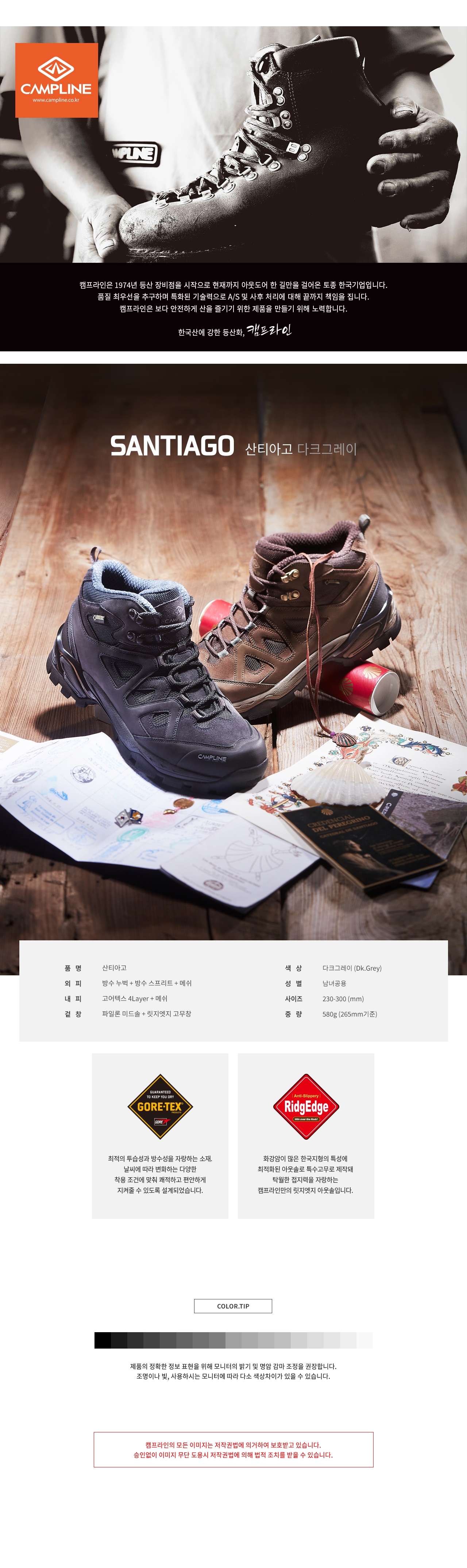 [CAMPLINE] Santiago Hiking Shoes (Dark Grey)– Unisex, Ultra-Lightweight, Waterproof, with Ankle Protection for Enhanced Safety, Made in Korea