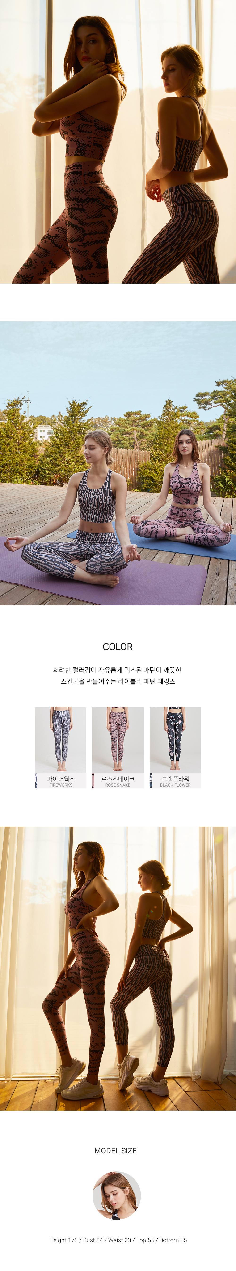 [Cielcoco] CLWP9085 Lively Patterned Leggings Rose Snake, Yoga Pants, Workout Pants For Women _ Made in KOREA