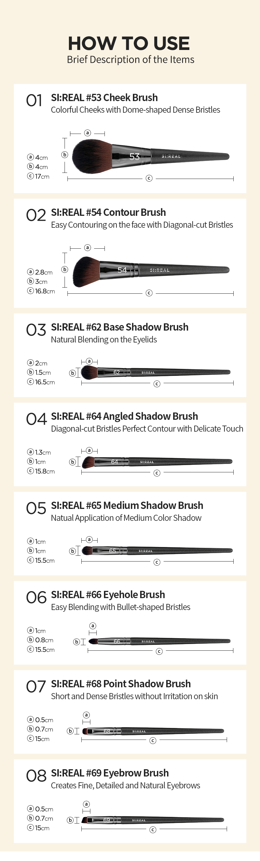 [FLALIA] SI:REAL Makeup Brush Set 8 pieces (B)_ Made in KOREA