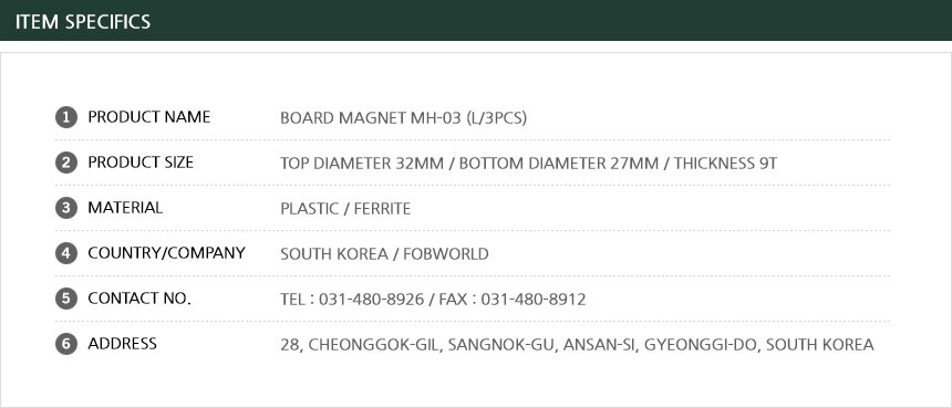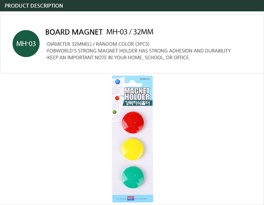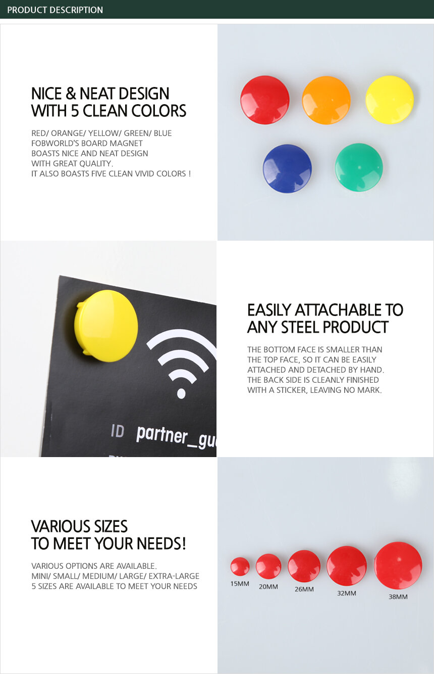 [FOBWORLD] Round Magnet Holder 32mm 3Pcs _ Notice Board/Planning Magnets, Round Plastic Covered Magnetic Buttons, Refrigerator Whiteboard Magnets for School Office Home _ Made in Korea