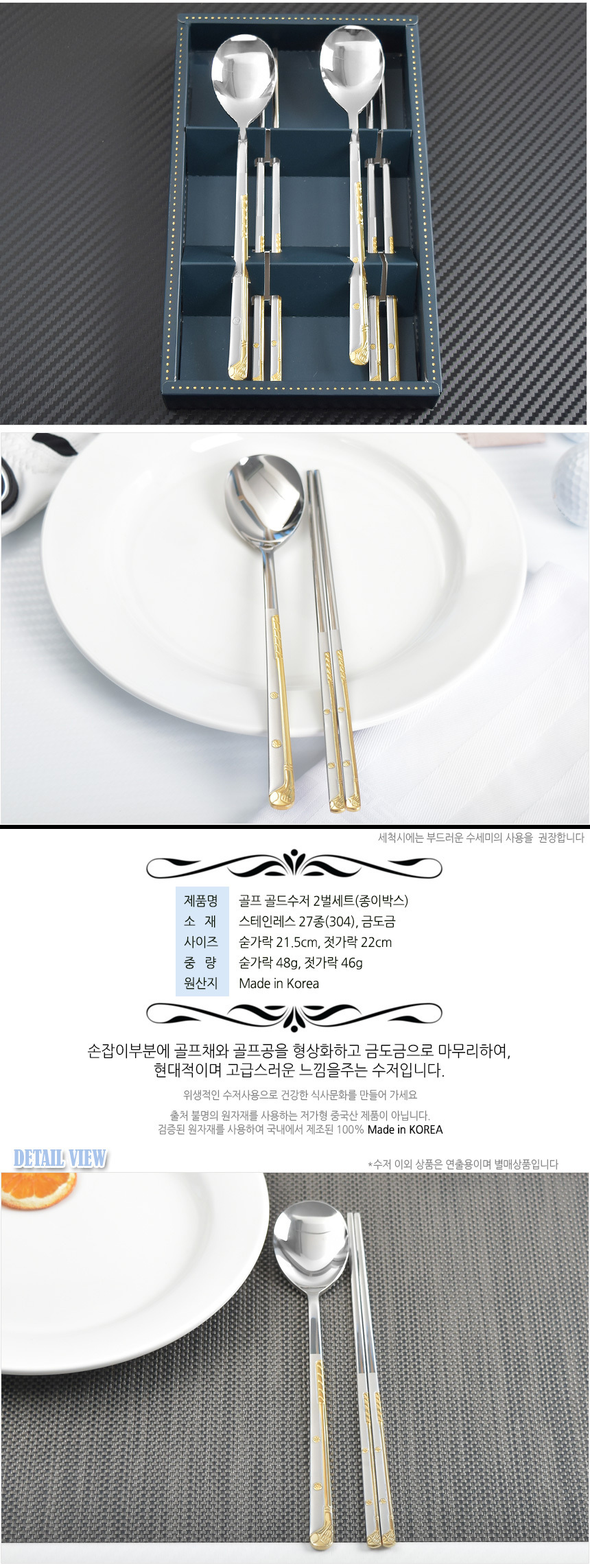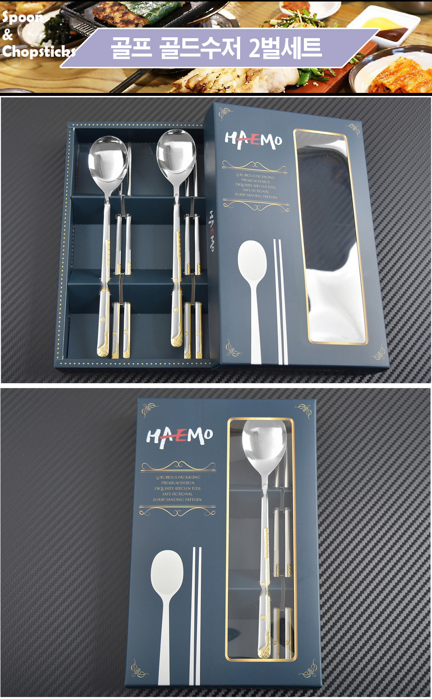 [HAEMO] Golf Gold Spoon Chopsticks, 2 Set (BK) _ Reusable Stainless Steel, Korean Chopstick Spoon, Tableware _ Made in KOREA