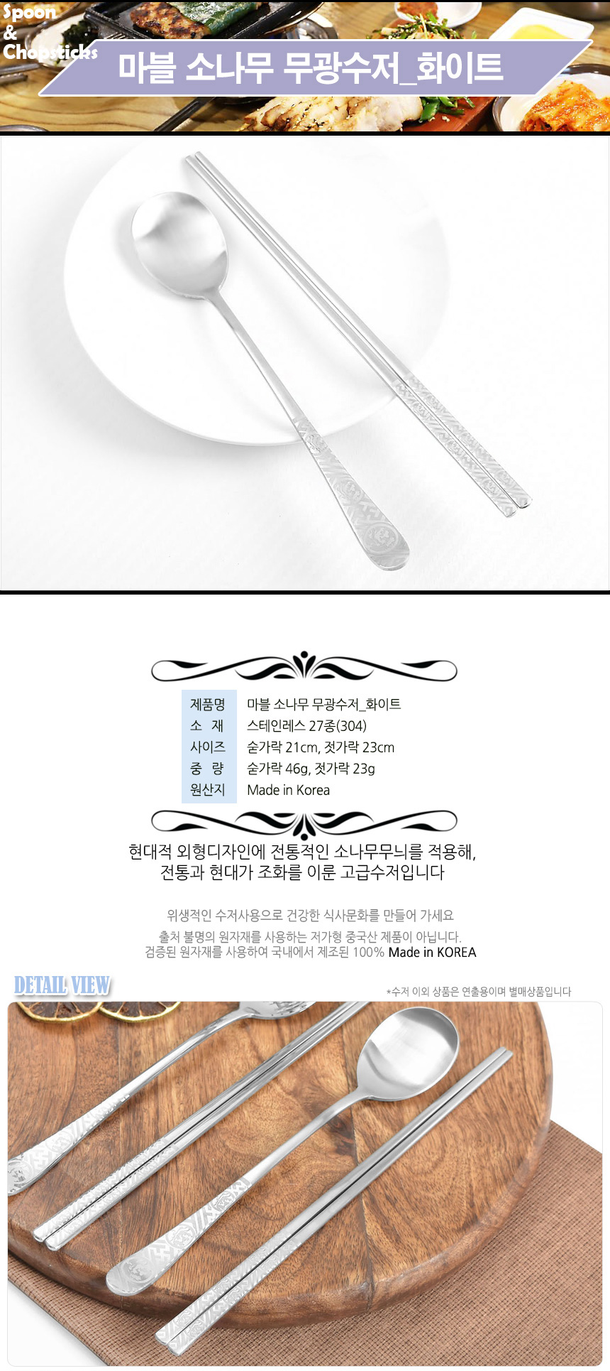 [HAEMO] Marvel Pine White Spoon Chopsticks-Spoon Chopsticks Korean Stainless Steel Cutlery-Made in Korea