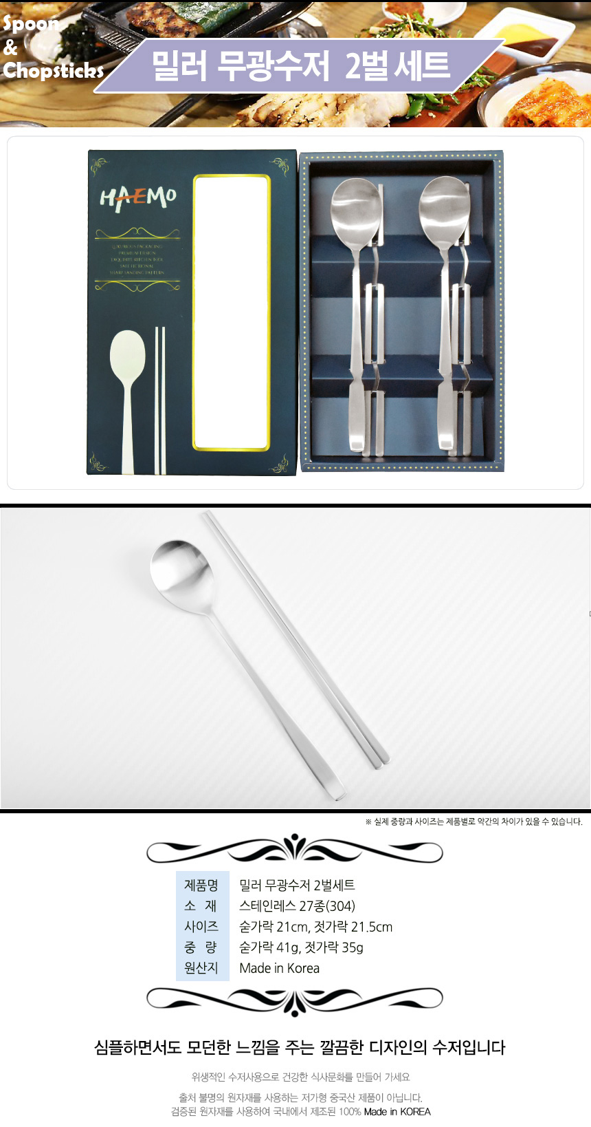 [HAEMO] Miller matte Spoon Chopsticks 2 Set _ Reusable Stainless Steel, Korean Chopstick Spoon _ Made in KOREA