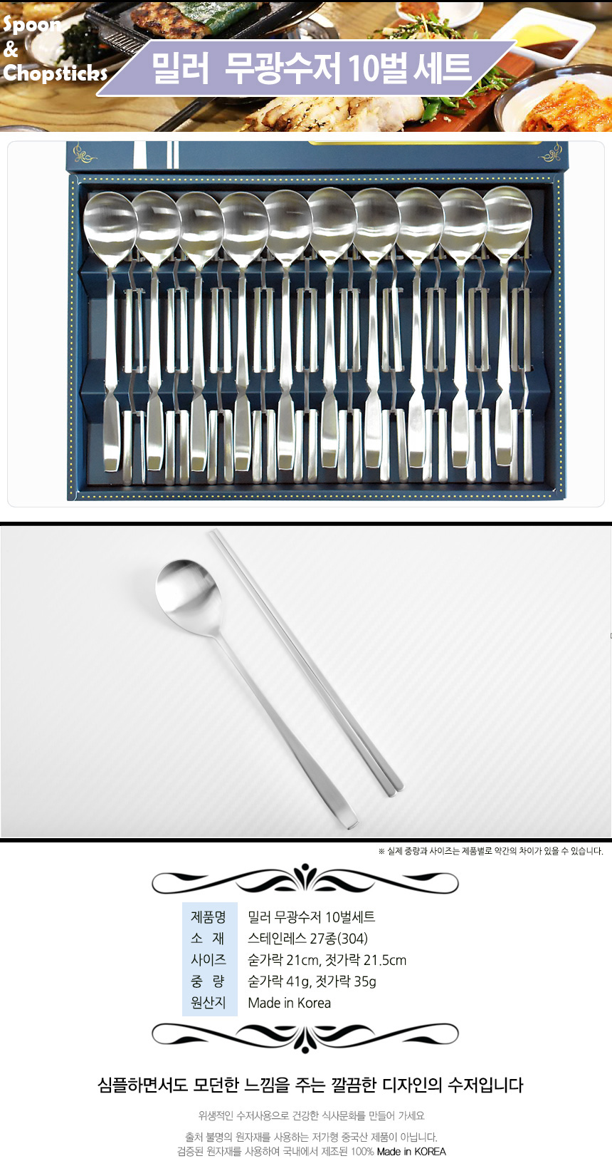 [HAEMO] Miller matte Spoon Chopsticks 10 Set _ Reusable Stainless Steel, Korean Chopstick Spoon _ Made in KOREA